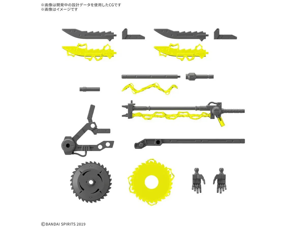 This set of plasma weapons allows you to equip your "30MM (30 Minutes Missions)" models from Bandai with electric weapons! Various forms of the weapons can be created, depending on the combination of the included parts; blade parts in both the normal and charged state are included. Flat hand parts are also included. Order yours today!