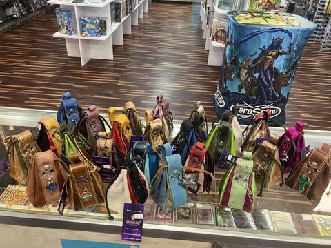 Each of these dice bags is handmade from genuine high-quality leather and fur—no synthetic materials. Grimbeard crafts each bag with care to ensure every customer gets something truly special. The vast majority of the bags are unique, meaning there was only 1 made. The photos show a variety of bags that have been made over the years.