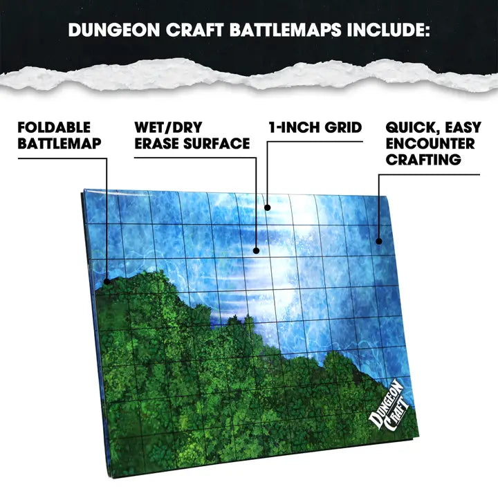 Each 24”x33” custom TTRPG terrain map features 1" squares, making it perfect for fantasy tabletop terrain. Laminated for wet-erase and dry-erase compatibility, these customizable terrain maps are compatible with Dungeon Craft series for Dungeons and Dragons, Pathfinder, Warhammer 40k, Shadowrun, and other TTRPGs.