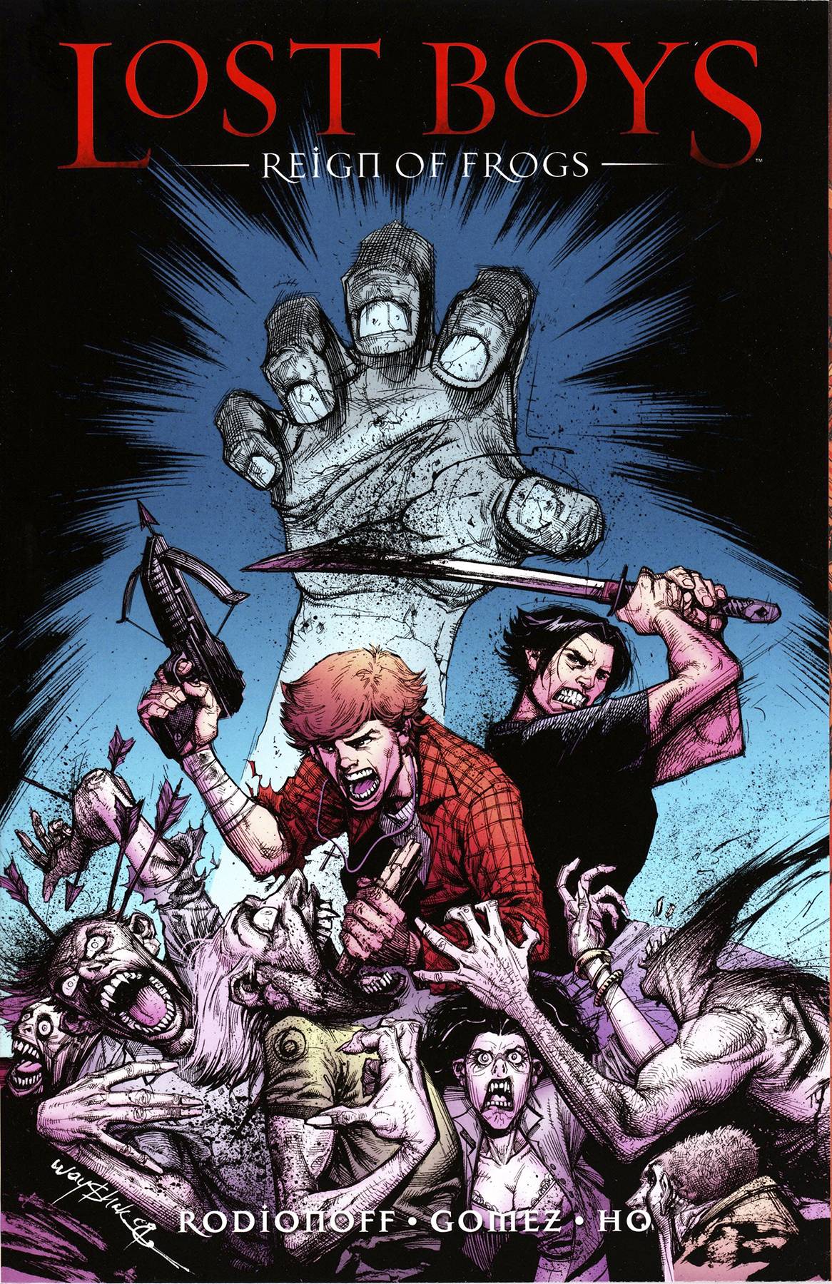 The carnage continues! Discover what really happened to the Frog Brothers in this collection of LOST BOYS: REIGN OF FROGS #1-4, which bridges the gap between the original The Lost Boys film and its sequel!