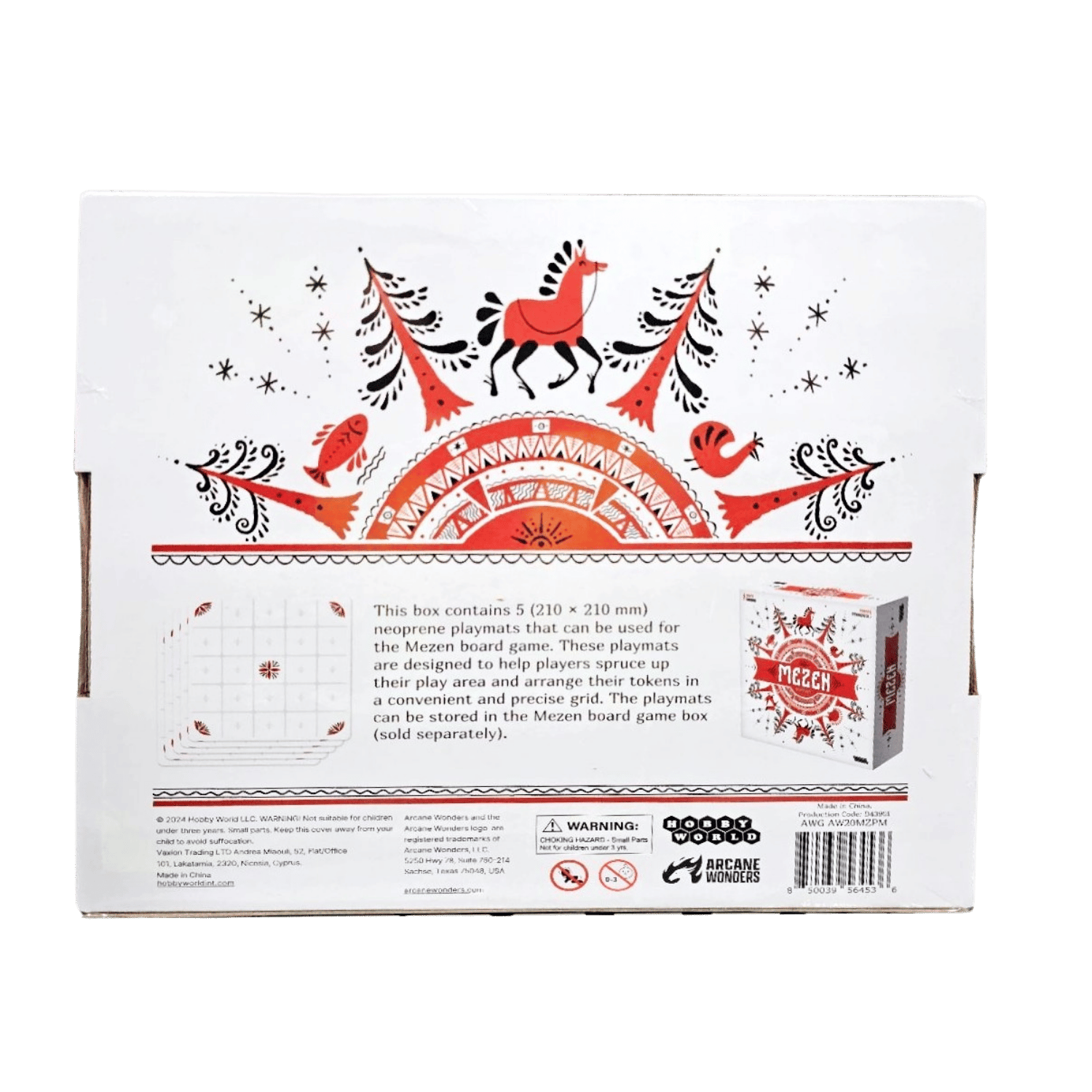 This box contains 5 (210x210mm) neoprene playmats that can be used for the Mezen board game. These playmats are designed to help players spruce up their play area and arrange their tokens in a convenient and precise grid. The playmats can be stored in the Mezen board game box (sold separately).