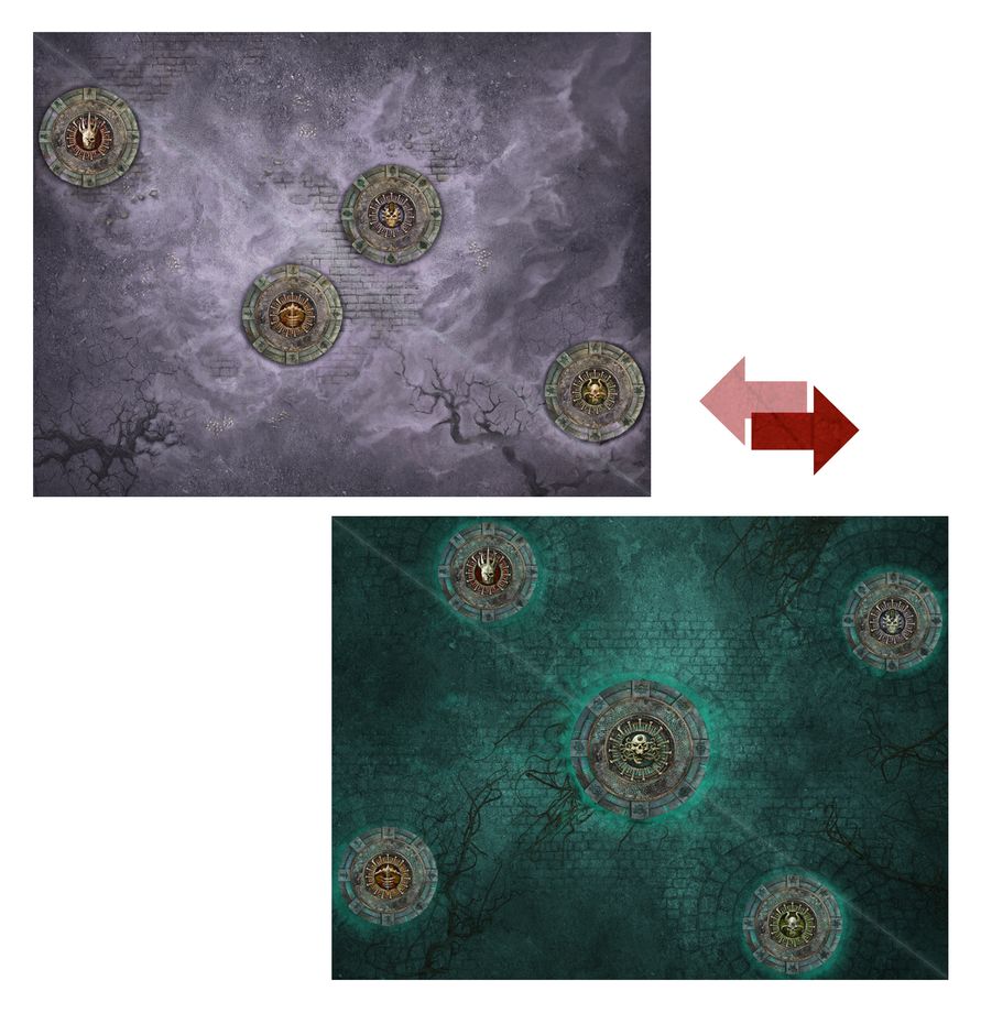 – 6x Plastic pieces of terrain: This terrain depicts the morbid architecture found in the Realm of Death. Two pieces grant special abilities to nearby units.